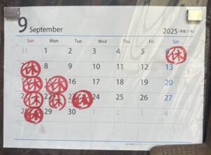 9月の休業日のお知らせ